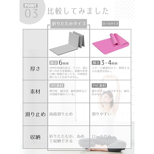 【折りたたみヨガマット tpe 6mm】6mm、より快適で滑りにくい。