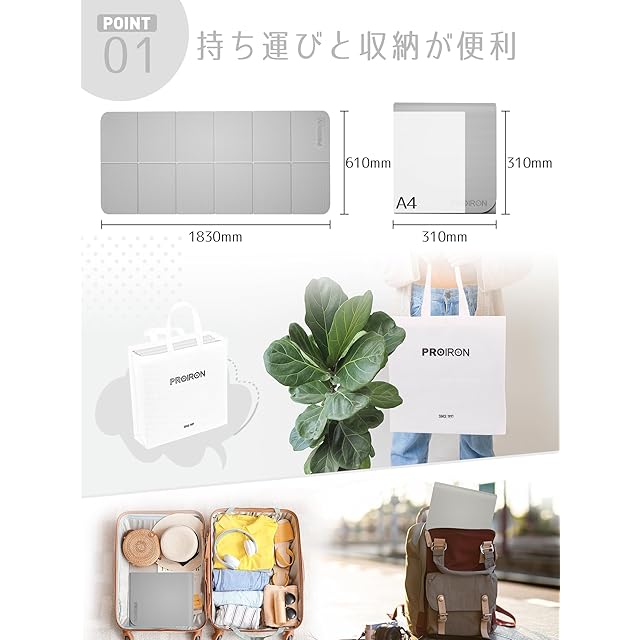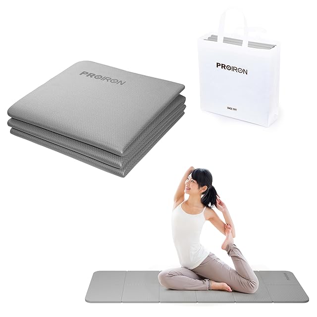 PROIRON ヨガマット 折りたたみ ストレッチマット 折畳み 6mm 折り畳みヨガマット コンパクト トラベルヨガマット トレーニングマット 折りたたみ 厚め 軽量 持ち運び TPE 材料 183×61×0.6cm (-グレー) | つむぎ屋