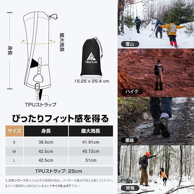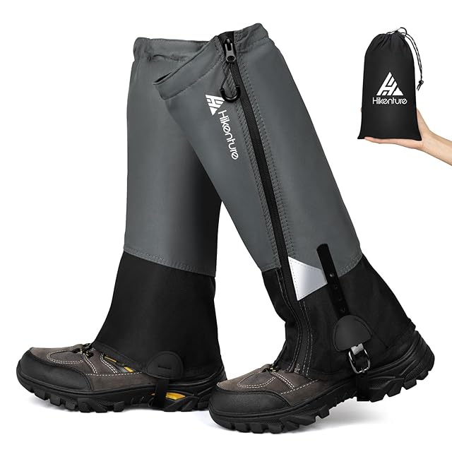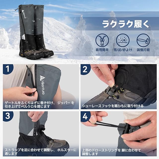 HIKENTURE ゲイター 防水・ロング・登山 高耐久性 レッグカバー 軽量 登山スパッツ トレッキング アウトドア バイク 男女兼用 収納袋付き 泥除け 砂よけ 雨雪悪天候対策(ブラック&グレー· L) | つむぎ屋