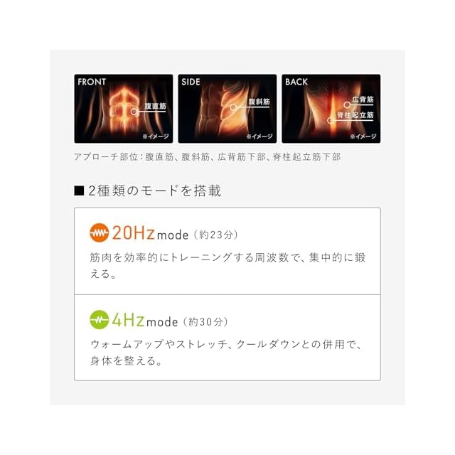 【腹筋、脇腹、背筋下部を同時に鍛える】お腹まわりの筋肉を鍛えるために、より進化した「コアベルト2」。 使い方は、巻くだけ。1日1回、たった23分のトレーニングで、筋トレの習慣が無い方でも、無理なく健康的な身体を目指せます。