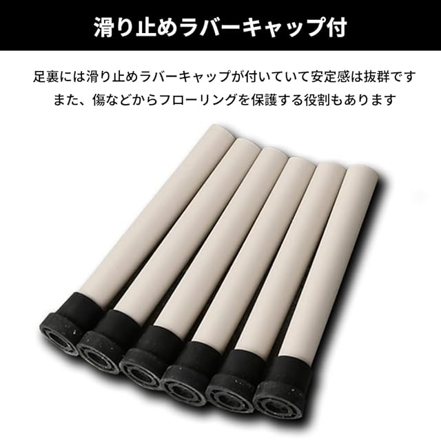【組立簡単】ストッパーピンでフレームを固定し、カバーをかぶせて脚を取り付けるだけですぐにご使用いただけます。足裏には滑り止めラバーキャップが付いているのでフローリングなどを傷から保護します。また、使用しない時はコンパクトに折り畳めるので場所を取りません。
