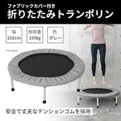 [山善] トランポリン 室内用 耐荷重最大100㎏ テンションゴム 静音 簡単組立 滑り止め コンパクト 大人 子ども 運動不足 運動 ファブリックカバー付きトランポリン FTP-100(GY) グレー | つむぎ屋