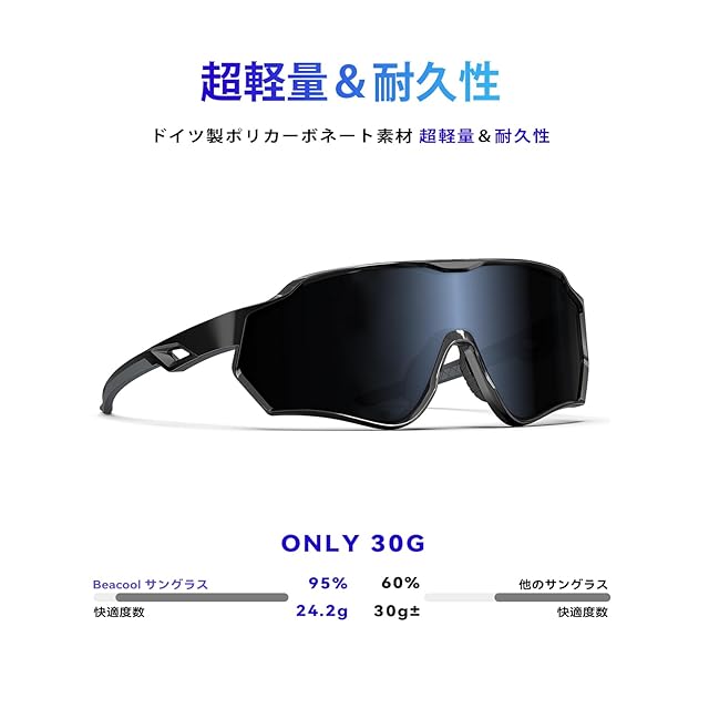 [BEACOOL] スポーツサングラス 超軽量 TR90 TAC 偏光レンズ 野球 自転車 釣り ランニング 登山 ゴルフ ドライブ バイク テニス スキー 大型フレーム設計 メンズ レディース UV400 紫外線防止 ユニセックス サングラス 安全 清晰 | つむぎ屋