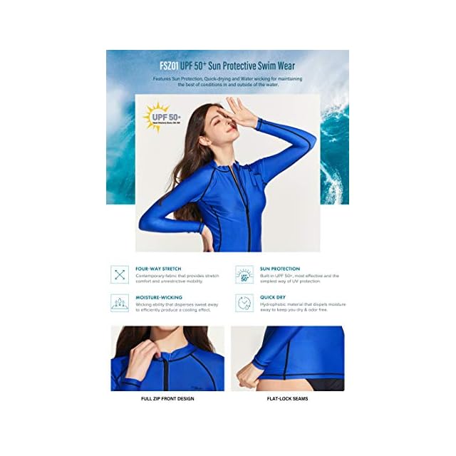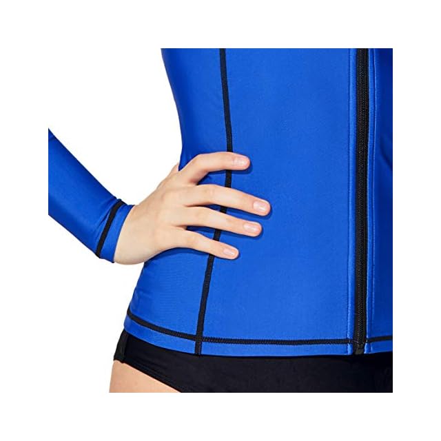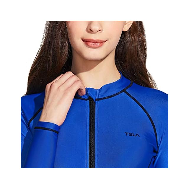 [テスラ] ラッシュガード レディース 長袖 フルジップ UVカット UPF50+ 接触冷感 吸汗速乾 軽量 ストレッチ ジャケット風デザイン 夏用 日焼け対策 水着用 羽織 シンプル 無地 FSZ01-CBL_L | つむぎ屋