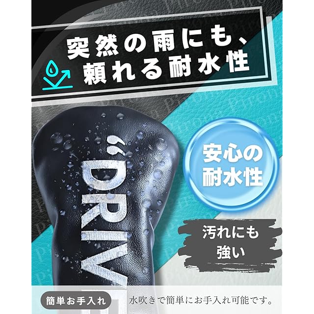 国内ブランド Pirona ゴルフ ヘッドカバー 最高級PUレザー使用 ドライバー フェアウェイウッド ユーティリティ 番手表示タグ付き 耐水仕様 シンプルデザイン & 視認性 豊富なカラー展開 (ターコイズブルー, ドライバー) | つむぎ屋