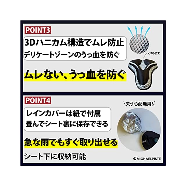 【レインカバーは紐で付属、急な雨にもすぐ対応できる】 付属のレインカバーは紐で簡単に装着でき、急な雨にも素早く対応可能。自転車やエアロバイクでのアウトドア使用でも、安心してサドルカバーをお使いいただけます。