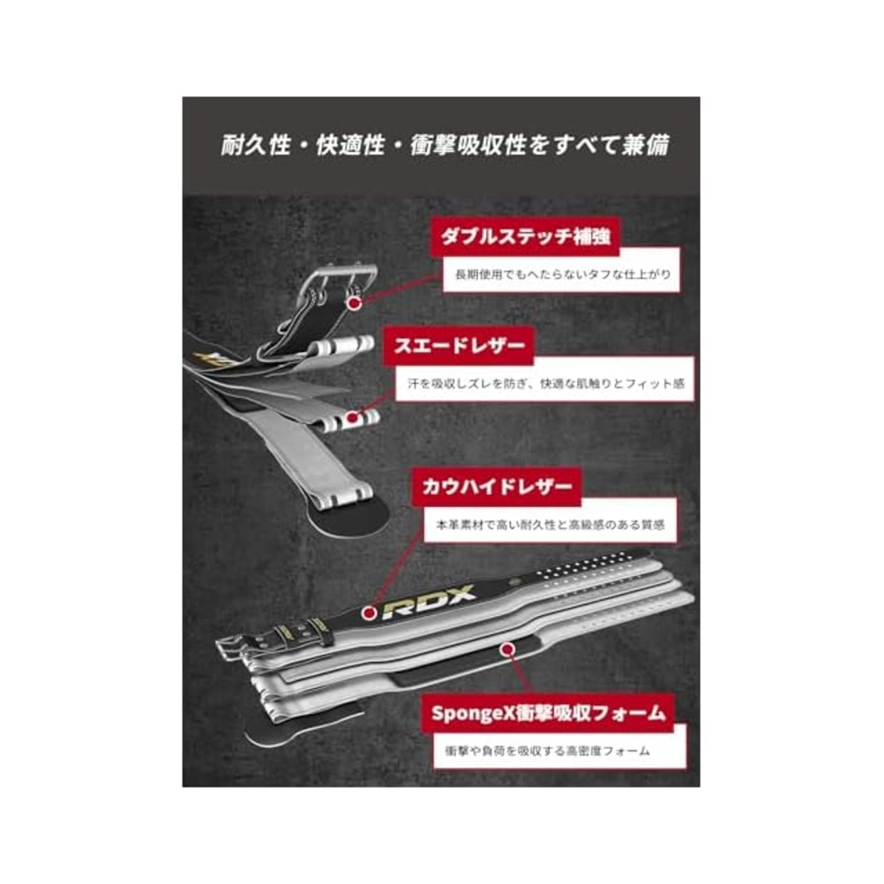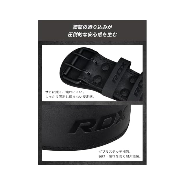 ✅【こだわりの高品質素材】RDXのトレーニングベルトにはこだわりのレザー素材カウハイド(牛革)ヌバックオイルタンニングレザーを使用しています。大きな負荷にも耐えることができる耐久性の高い素材でトレーニングをしっかりとサポートします。ステンレス製のバックルは非常に頑丈でベルトの位置をしっかりと固定し、抜群のホールド感を実現します。