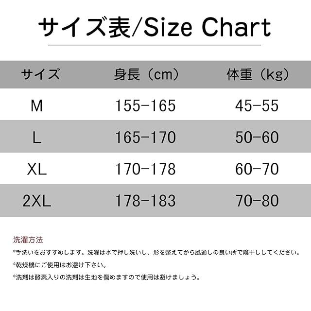 【着用サイズ】【M: 推奨身長155-165cm/推奨体重:45KG-55KG】【L:推奨身長165-170cm/推奨体重:50KG-60KG】【XL:推奨身長170-178cm/推奨体重:60KG-70KG】【2XL:推奨身長178-183cm/推奨体重:70KG-80KG】
