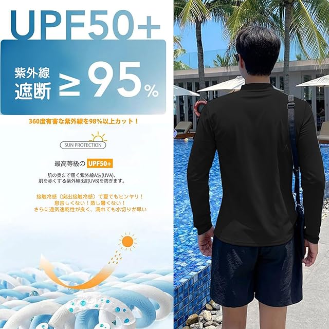 【UVカット】安心のUPF50+(肌に有害な紫外線を98%以上カット)生地使用しているため、「着るだけ」で、うっかり日焼け予防を実現。紫外線の強い海や川など、屋外での使用も安心です。足首丈レギンス、水を通さず、肌にベタつきにくく、虫刺されやクラゲ対策にも。