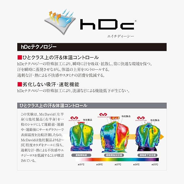 hDc機能搭載(劣化しない吸汗・速乾機能)