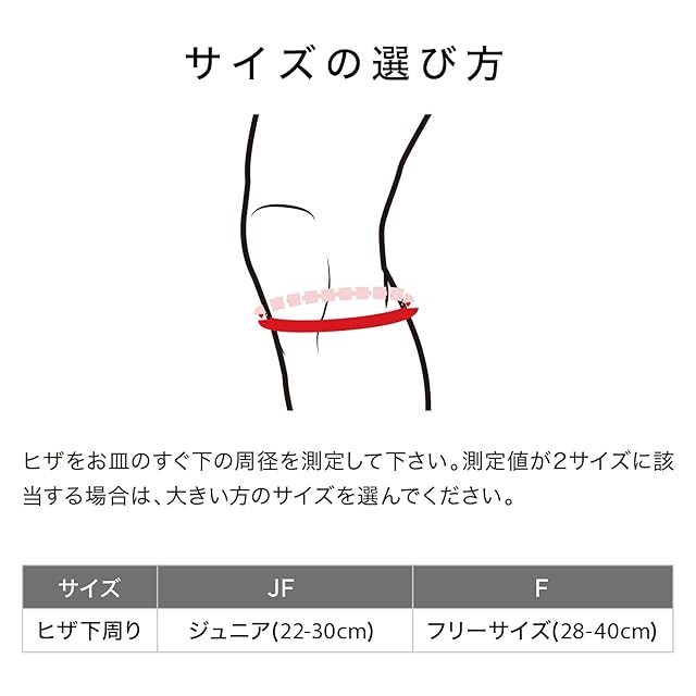 (ヒザ下周り/cm) フリーサイズ:28〜40 ジュニア:22〜30 ※ジュニアサイズはブラックのみ
