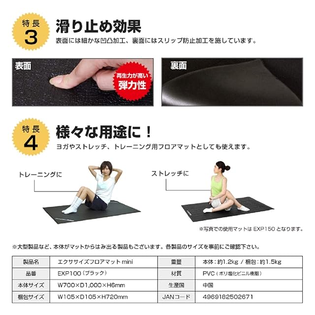 衝撃の吸収、滑り止め効果で快適なエクササイズ