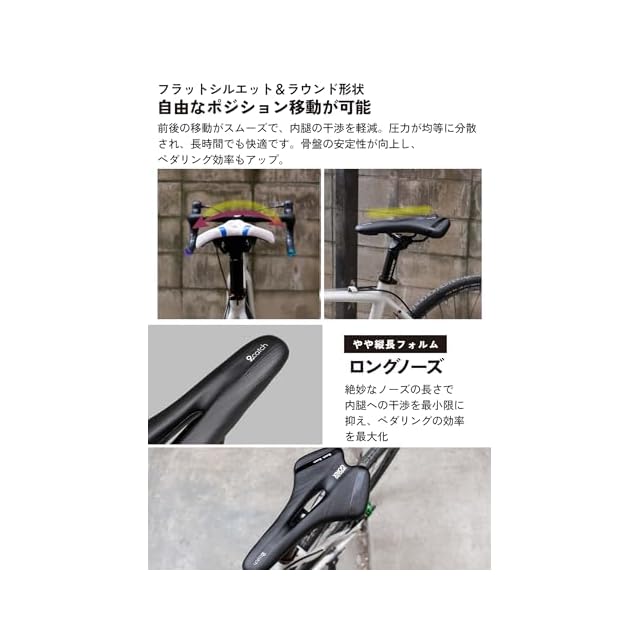 【自分好みのカスタマイズ】自転車全般、ロードバイク、マウンテンバイク、クロスバイク、ミニベロの サイクリング、出勤通学に日常使いとしても、使用できる安定感のあるサドルです。スポーティなデザインとフラットシルエットで、車体に合わせてカスタマイズが楽しめます。