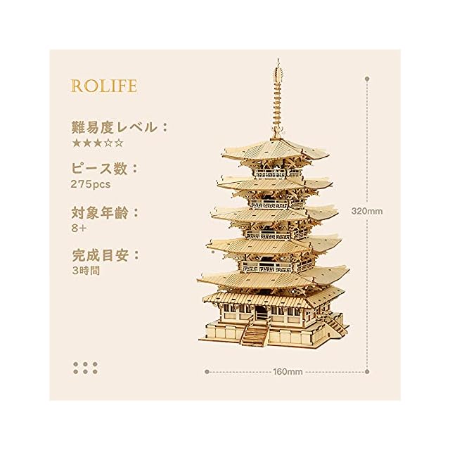 【商品仕様・品質】木製合板、英語説明書; 組立サイズ:160*160*320mm; 完成目安:3時間; 品質:商品に問題がありましたら、どうぞ[注文履歴] - [出品者に連絡する]よりお気軽にお問い合わせください。