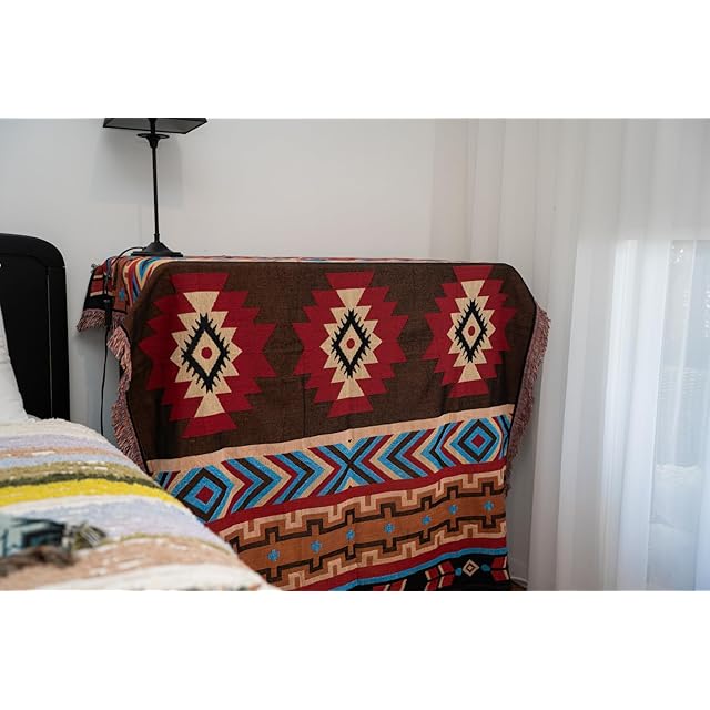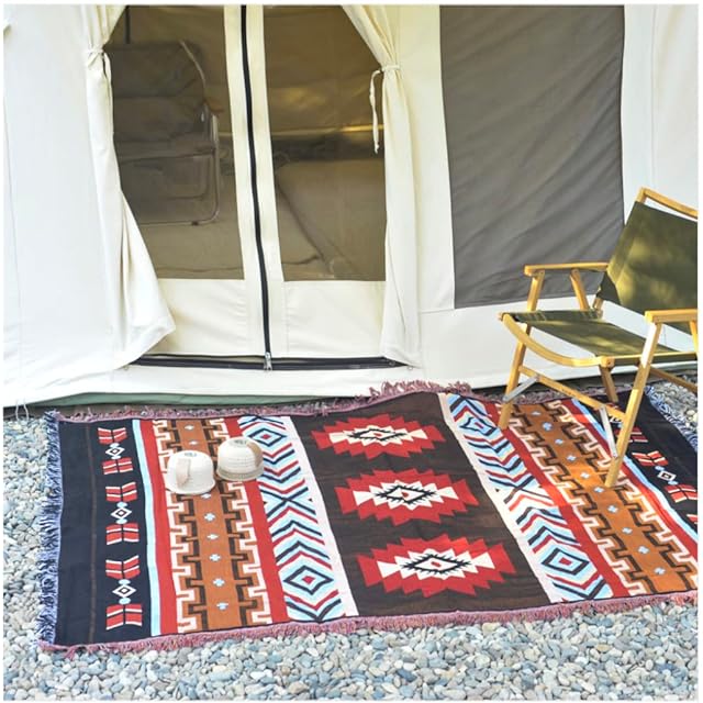 Peel Forest エルパソブランケット マルチカバーメキシカンラグ ネイティブ柄 オルテガ柄 キャンプラグ サドルブランケット 車中泊マット アウトドア バンライフ 130X160cm……… | つむぎ屋