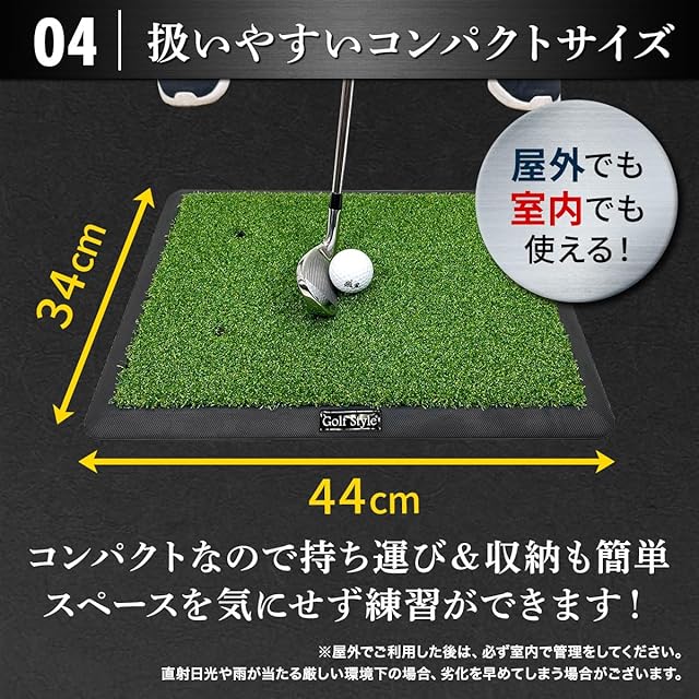 GolfStyle ゴルフマット 練習 本格双芝 素振り 軌道確認 アイアン ドライバー スイング 練習器具 室内 屋外 人工芝 ゴムマット 34×44cm 単品