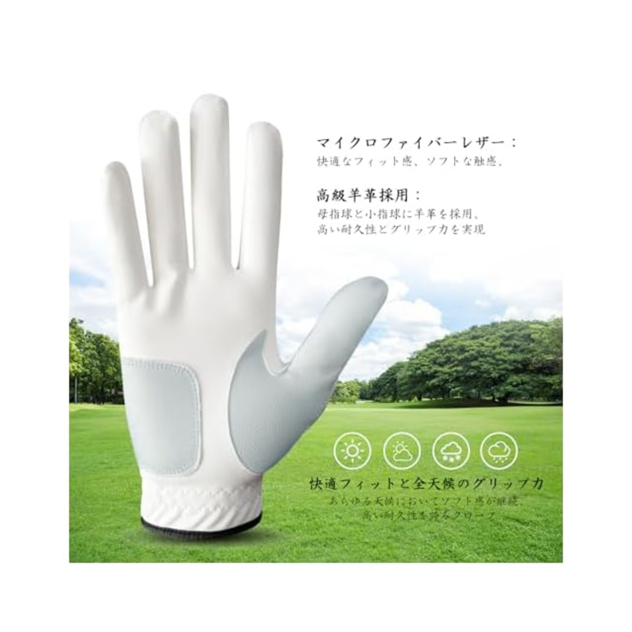 ゴルフグローブ メンズ 3枚セット 天然羊革と合成皮革の組み合わせ ソフト 柔らかめ 伸縮性 通気性 滑りにくいグリップ 雨 汗に強い 全天候モデル ゴルフウェア SWPY-610 (右手用(3枚セット), 22) | つむぎ屋