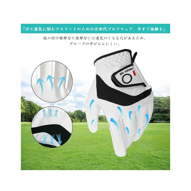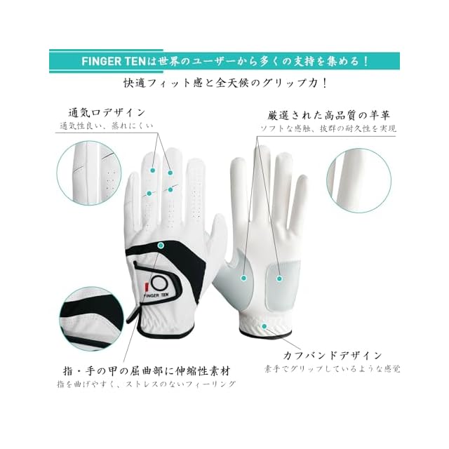 P2.強力グリップ:しっとりとした高級合成皮革と羊革で、強力なグリップ力を発揮。伸縮性のある素材により、幅広い動きが可能で、長時間のラウンド中の疲れを軽減します。