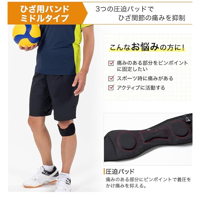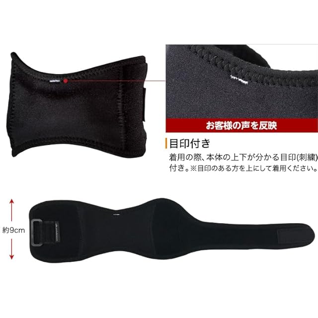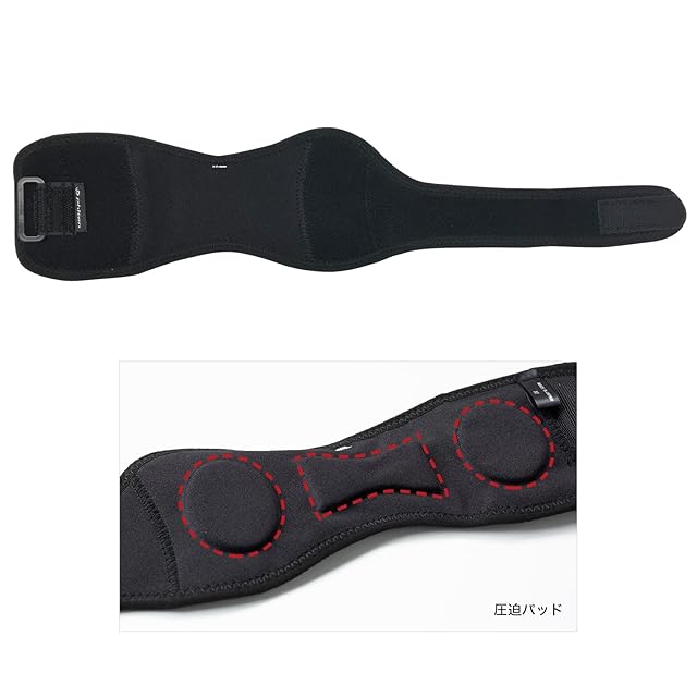 素材:表生地中央/ナイロン80%、ポリウレタン20% 表生地左右部/ナイロン93% ポリウレタン7% 裏生地/ナイロン80%、ポリウレタン20% 裏生地先端/ポリエステル100% ベルト部中材/ポリウレタン パッド/エラストマー アジャスター部/ポリアセタール、ポリエステル100% 面ファスナー/ポリエステル100%