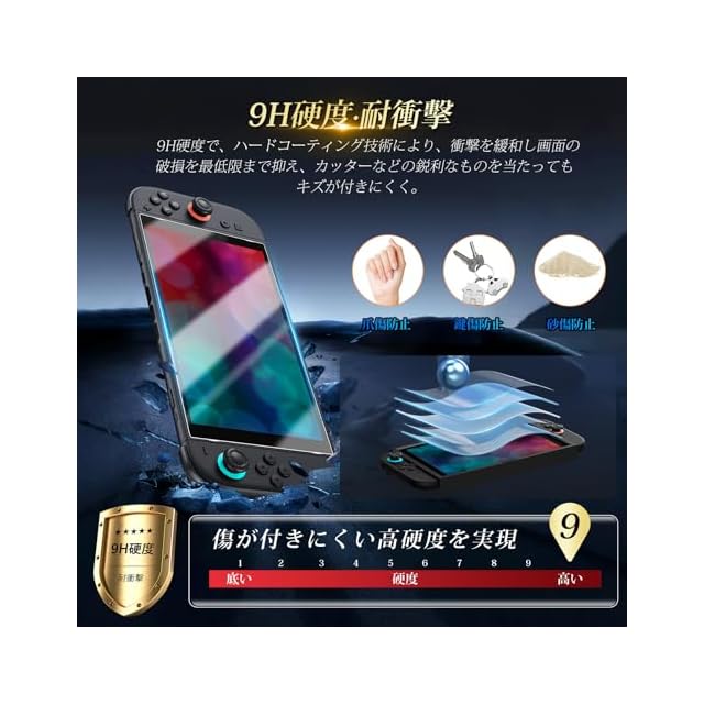 【高品質素材】日本製素材旭硝子製を採用しております。硬さは業界トップレベルの9Hに達しました。ハードコーティング技術を利用して、外部衝撃を吸収し、防爆性をアップして、外からの衝撃に簡単に吸収して、衝突されても、画面が壊れるリスクを 99% 減らします。