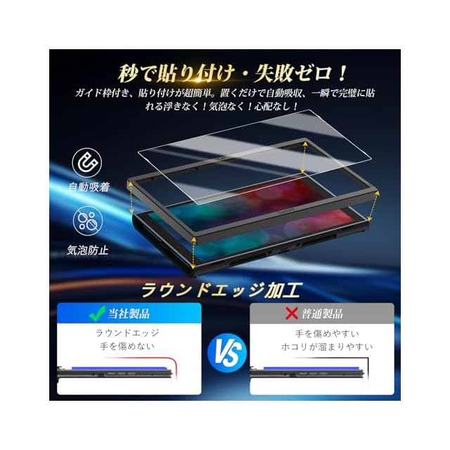 【自動吸着】自動吸着機能あり、フィルムをスクリーンに軽く押すだけで自然に画面に吸着できます。そのため初心者からフィルムの貼り付けが苦手な方にも大変便利です。