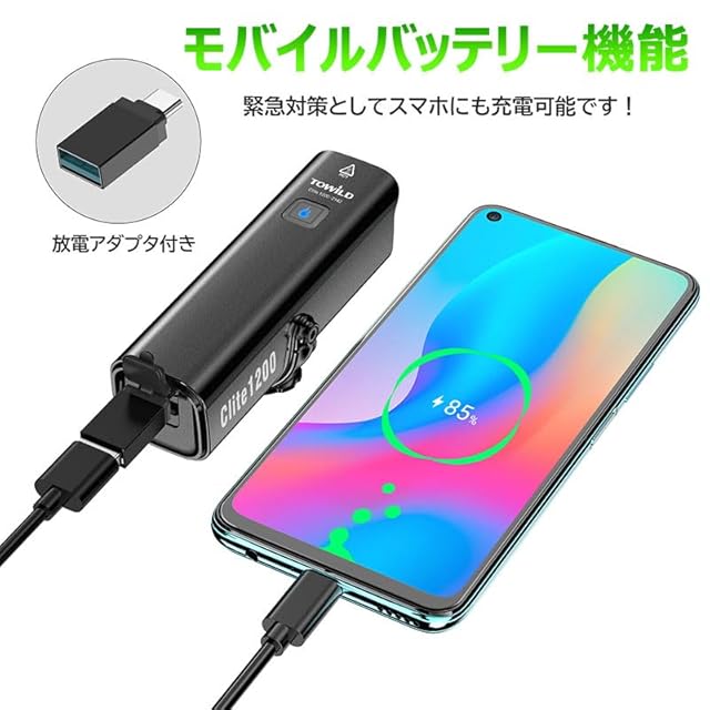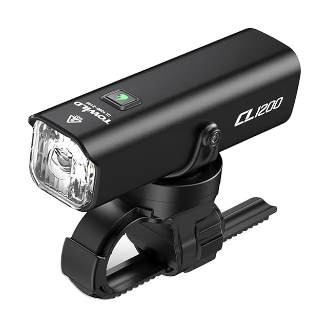 【新しい5000mAh大容量バッテリー】 TOWILD CL1200 自転車ライトは5000mAhアルミ合金バッテリーを内蔵し、ロードバイクライトとして最大12時間(フラッシュモード)の連続使用が可能。防眩レンズ搭載で上向き光をカットし、対向車や歩行者への眩惑を軽減。1200ルーメンの高出力で160m先まで照射可能な、夜間サイクリングに最適な自転車用ヘッドライトです。