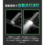 【自動点灯&5モード】 スマートモードでは振動感知センサー搭載で停車時は120秒後に自動消灯、再始動で即点灯。 5つの照明モード(▼高/中/低輝度 ▼ナイトフラッシュ/ディフラッシュ)で、ロードバイクライトとして道路状況に応じた最適な光量選択が可能。電池消費を抑えつつ安全性を確保します。