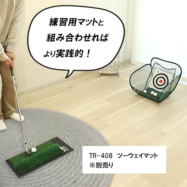 自宅でアプローチ練習ができる、ショットマット付きスタンスマット・練習用ボール(12個)・ボールターゲットミニをセットにしたアプローチ練習器です。