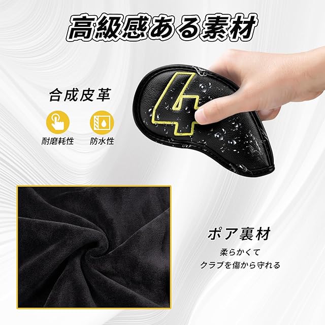 【高級感のある素材】表生地は高級感のある合成皮革(PUレザー)なので、耐磨耗性、防水性があります。裏生地はポリエステル製柔らかいボア素材になっていますので、大切なクラブヘッドを傷や汚れから守ります。