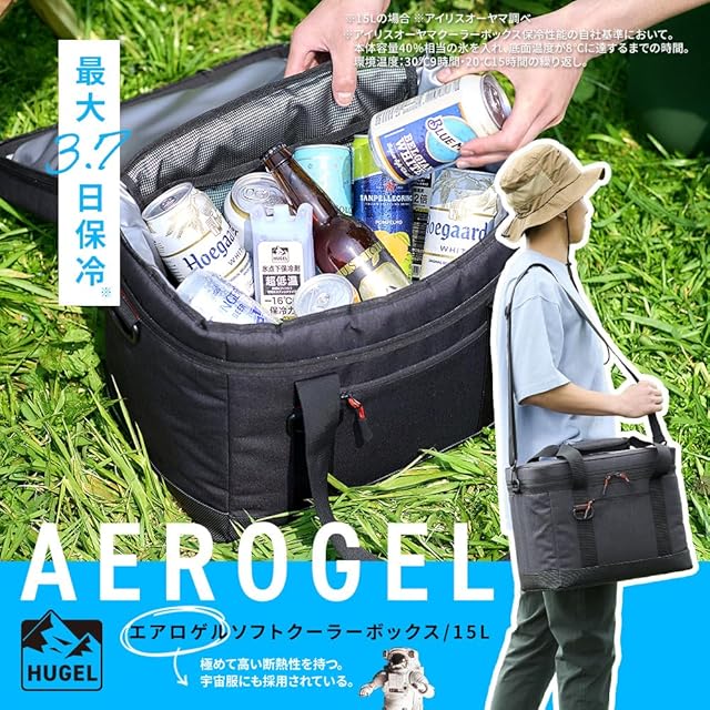 宇宙服にも使用される、高断熱素材“エアロゲル”を使用したソフトクーラーボックス。使いやすい小型サイズ“15L”が登場!ソロキャンプやピクニック、普段使いにおすすめ。最大保冷時間:約3.8日(※)。(※本体容量40%相当の氷を入れ、底面温度が8℃に達するまでの時間。環境温度:30℃→9時間・20℃→15時間の繰り返し。)