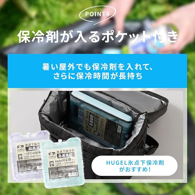 【保冷剤が挟めるポケット付き】熱い屋外でも保冷剤を挟めば、さらに保冷時間が長持ち。(※保冷剤は付属しません。)