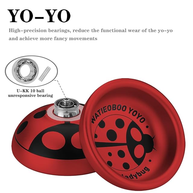WATIEOBOO yoyo メタルヨーヨープロフェッショナル、反応しないヨー ヨー 子供初心者、大人、中級~上級者向けストリングプロフェッショナルトリック(7つ星てんとう虫)