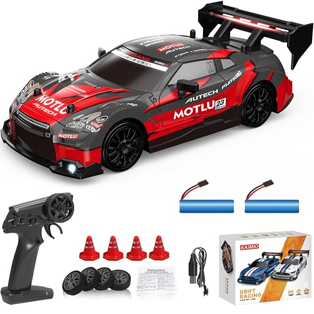多機能ドリフトRCカー】このRCドリフトカーは四輪駆動システムで設計され、四輪駆動システムとハイパワーモーターを搭載し、強力なパワーと駆動力を備えています。交換可能なレーシングタイヤとドリフトタイヤを装備し、高速レースとドリフトレースを簡単に切り替えることができます。