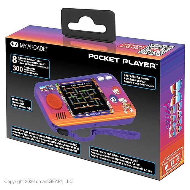 My Arcade Data East Pocket Player:ポータブルゲームシステム 308種類のレトロゲームがプリロードされ、2.75インチのカラースクリーン、スピーカー(DGUNL-4127)、パープル
