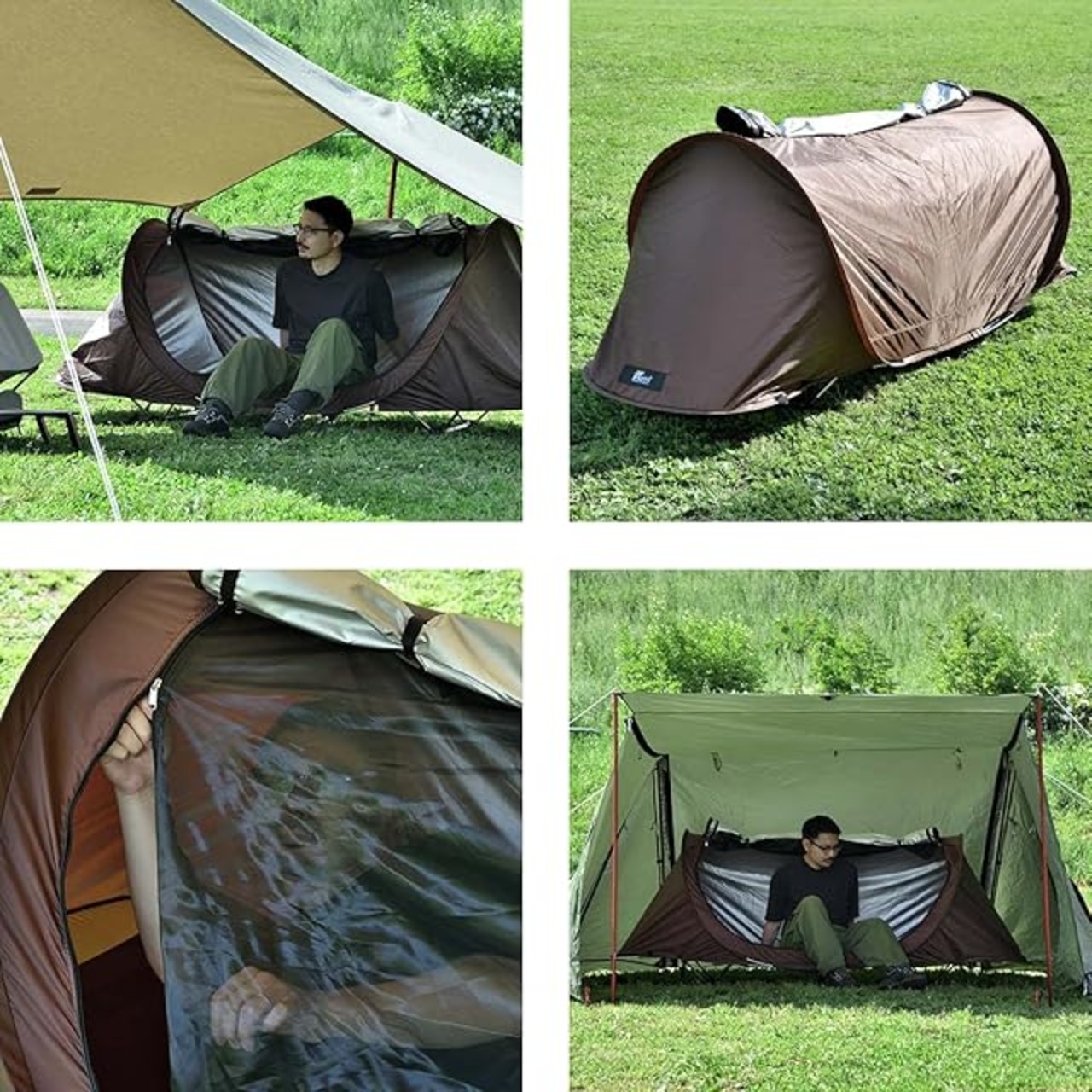 ✅【パッと開くだけのカンタン設営!】 コットと相性抜群のメッシュテント! パッと開くだけで組み立て簡単! 1人用のポップアップメッシュテントです。 テント内や車中泊など使い方いろいろ。 コットとの相性は抜群です!