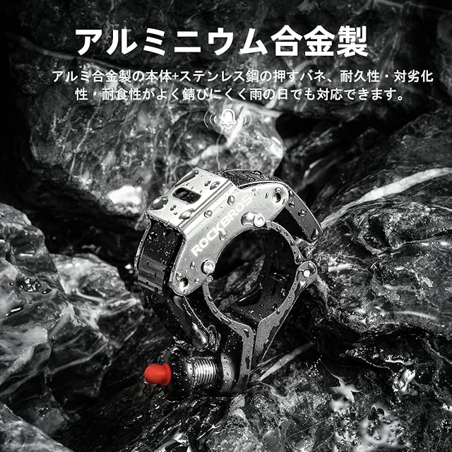 【耐用性よい・錆びにくい】耐久性・対劣化性・耐食性に優れたアルミ合金製の本体+ステンレス鋼のかいたボダンのバネ、錆びにくく使用寿命も長いです。万が一雨や水しぶきにあたっても、楽に対応できてご心配なく。ベルのマウントがPA素材で作られており、靭性が高く長持ちできます。