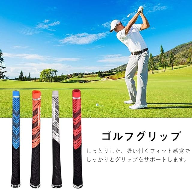 【ゴルフグリップサイズ】 グリップ長さ:27cm グリップ重量:53g (±3g) グリップ直径:15.2mm グリップサイズをチェックしてからご購入ください。 【ゴルフグリップ上部のゴム】 ゴム素材を採用し、雨の日にも滑らず乾燥している触感を与えます。 【ゴルフグリップ下部のラバー】 高品質のラバーで滑り止め性に優れ、変形しにくいです。厚いゴム素材は手への衝撃をしっかり吸収します。 【超軽量素材】 ゴルフクラブグリップは超軽量素材を使用しており、手への負担がありません。より正確にスイングができます。人間工学に基づいて設計されたグリップボディは、手に完全にフィットします。 【握る心地いい】 柔らかくて粘着性のあるポリウレタンのグリップ外層は、最高の快適な手触りを提供しますデザインされた滑りにくい表面パタ一ンを組み合わせ、性能、快適性、信頼性を最大限に実現。ゴルフクラブグリップは、多くのクラブメーカー がデザインの基礎を作る基準となっています。