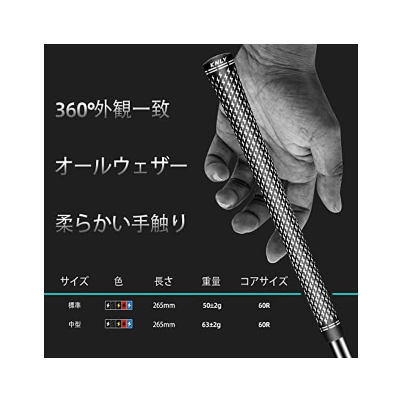 商品名:KNLYゴルフクリップ13セットは、全天候型で性能滑り止めのゴルフクラブグリップであり、360のライトニングパターンがデザインされ、標準/中型のサイズがあり、5色から選択できます (中型, 白黒)