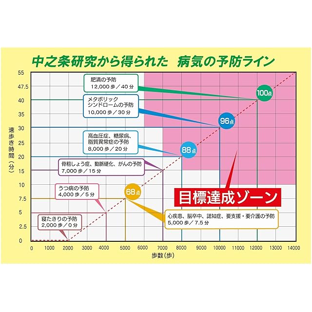 表示内容:総歩数0~99999歩、速歩歩数0~99999歩、速歩時間0分~1439分、歩行距離0.00~999.99km、消費カロリー0.0~9999.9kcal、時刻0: 00~23: 59(24時間制)、カレンダー2019年1月1日~2099年12月31日、バーグラフ0~100点(一目盛り5点)、メモリー 今日/1~30日前/30日間平均値