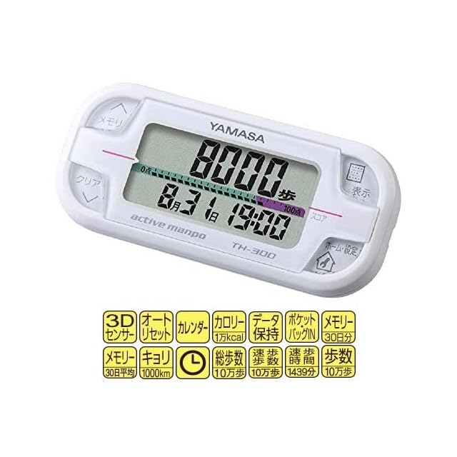 商品名:山佐時計計器 万歩計 アクティブ万歩 ホワイト TH-300W