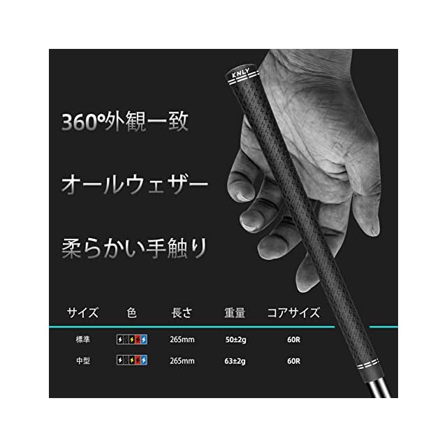商品名:KNLYゴルフクリップ13セットは、全天候型で性能滑り止めのゴルフクラブグリップであり、360のライトニングパターンがデザインされ、標準/中型のサイズがあり、5色から選択できます (標準, 黒)