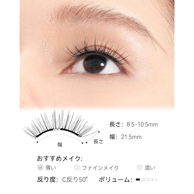 良質な動物実験フリー素材:動物実験フリー、清潔で、軽く、独特で快適。厳選した動物実験フリー素材による快適さ、柔らかい装着感を目に与えます。たっだ0.034gのつけまつげは、羽のようにふんわりで、目に呼吸感を与え、最高な快適さを手に入れます。(Tips:目はデリケートなので、つけまつげをつけたら、慣れるまで一定の時間が必要です)