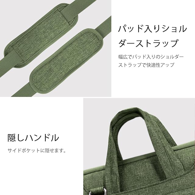 パソコンケース15.6 16インチ 防水パソコンバッグ PCケース衝撃吸収 ノートパソコンケース ショルダーストラップ付き PC バッグ パソコンカバー けーす通勤通学 手提げカバン女性 コンピューターMacbook Pro 16 M1 Pro/Max 2021, macbook air 15”富士通/東芝 保護用 多機能(アーミーグリーン)