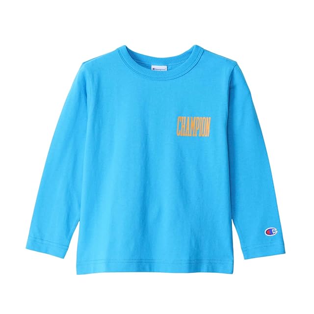 [チャンピオン] グラフィックロゴプリント ロングTシャツ キッズ 長袖 丸首 綿100% Relax Fit ロングスリーブポケットTシャツ ベーシック CKSX407Z アクアブルー 130