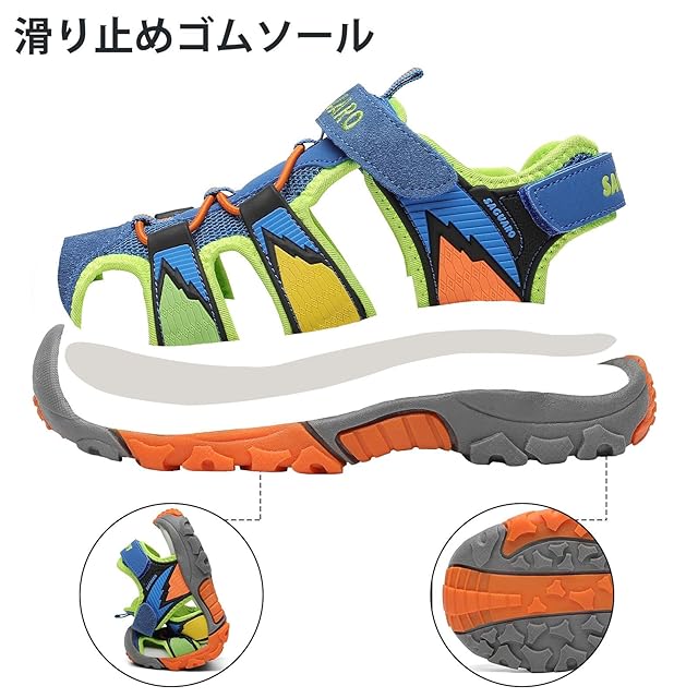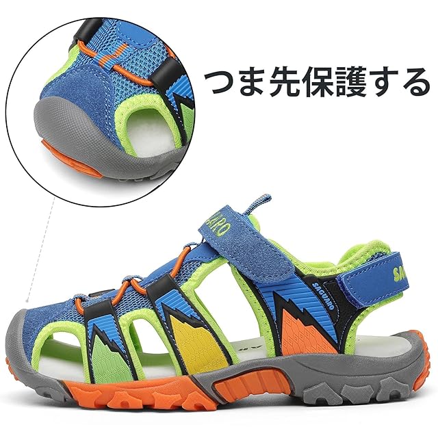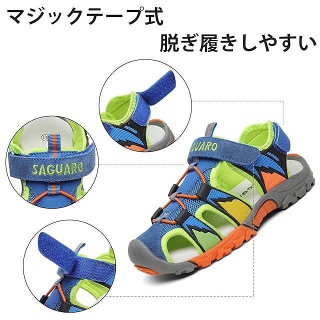 [Putu] キッズ サンダル ビーチサンダル つま先保護 マジックテープ アウトドア スポーツ 透気 柔らかい 滑り止め 春夏秋 男の子 女の子