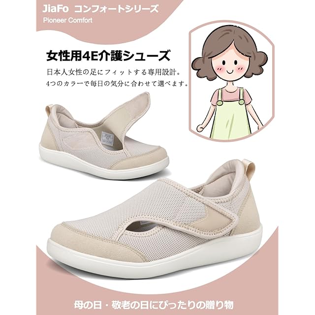 【しっかりした素材感】柔らかさと強度を兼ね備えた上質ナイロン素材を使用し、介護現場で求められる耐久性と、女性らしい上品さを両立しました。 高齢者の方に人気の商品で、普段履きや室内、病院、介護用、リハビリ用、敬老の日など贈り物としても利用されています。