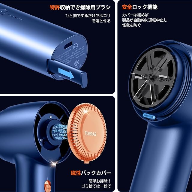 【2024進化・最高傑作】TORRAS けだまとり 電動 特許新型 毛玉取り機 様々な衣類に対応 替刃付き 強力 6枚刃モデル 3段階調節可能 USB充電式 コードレス使用可 毛玉カット 毛玉取り器 クリスマス プレゼント 紺色