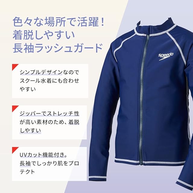 [スピード] ラッシュガード ジュニアロングスリーブアクアシャツ 水泳 ユニセックス SD65J177 ネイビーブルー 130