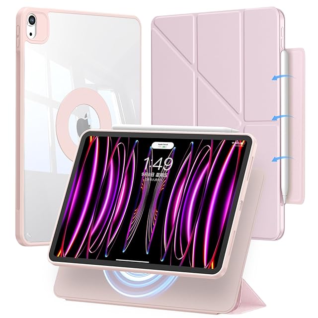 iPad Air 13インチ ケース M2/M3対応(2024/2025)iPad Pro 12.9インチ 専用カバー 第6/5/4世代(2022/2021/2020)磁気式&着脱式 折りスタンドケース 衝撃保護 横置&縦置角度調整可能 三角形の構造 安定設計 Pencil Pro/USB-C対応