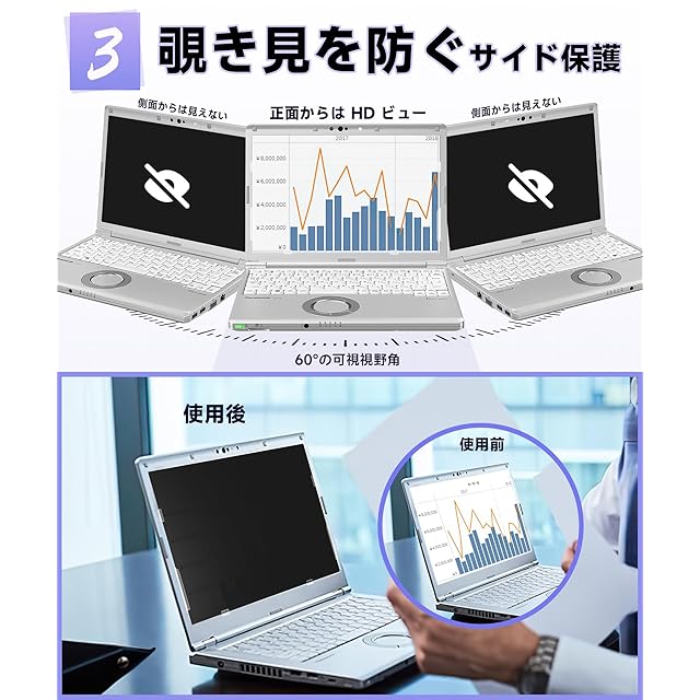 【めまい防止】のぞ14インチ 覗き見防止フィルムのアンチグレアフィルム層は、表面の微粒子による散乱反射や乱反射を軽減し、クリアで透明な視覚空間を作り出し、まぶしさによる目のダメージを軽減します。スクリーン保護フィルムには傷防止コーティングも追加されており、日常使用による傷を防ぎます。